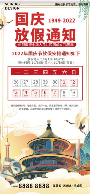 喜庆国庆73周年放假通知海报 盛世华诞国庆73周年放假通知海报 生鲜蔬菜直播预告海报 清爽国庆73周年放假通知海报 欢度国庆国风插画电商促销海报 国庆祖国万岁放假通知海报 国庆节致敬劳动人民手绘插画海报 国庆节一家人*游玩绘插画海报 国庆节钜惠来袭电商促销氛围海报 国庆放假通知天坛东方明珠手绘插画海报 重阳节祖孙赏菊手绘插画海报 国庆出游省钱好物插画电商促销海报 重阳节手绘糕点重阳酒插画海报 国庆出游日历插画海报 重阳节老俩口相互陪伴手绘插画海报 国庆73周年放假通知海报 重阳节菊花酒重阳糕点手绘插画海报 国庆73周年大气简约*十一放假通知海报 重阳节父女深情陪伴手绘插画海报 重阳节安康父女陪伴谈心插画海报