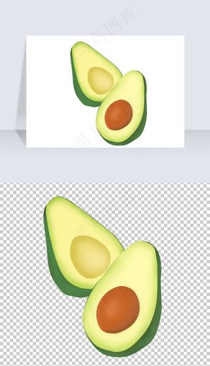 水果插画写实绿色牛油果