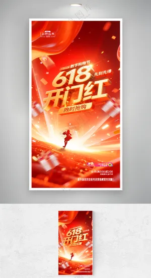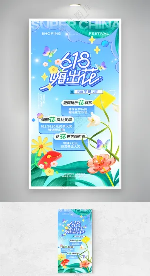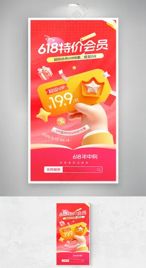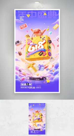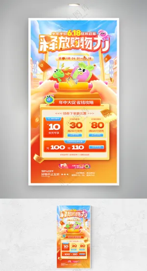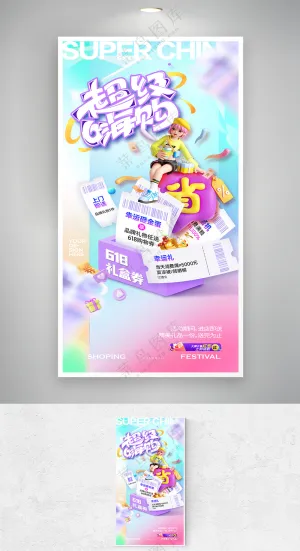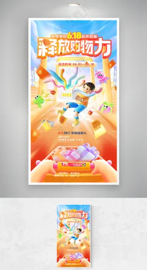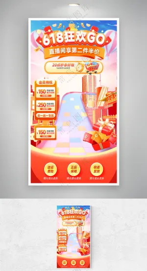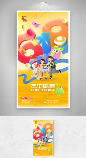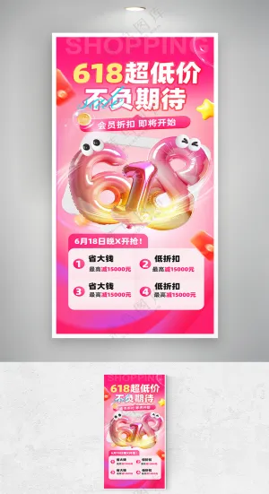 卡通家庭购物618双11购物节大礼包打折可爱插画