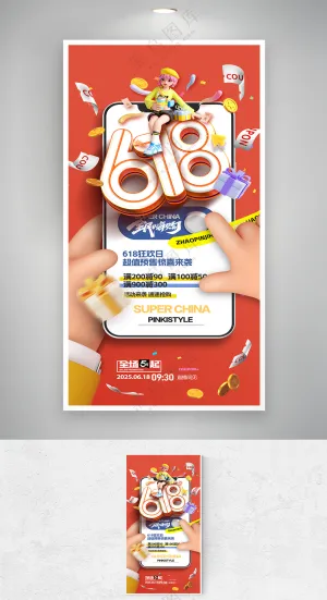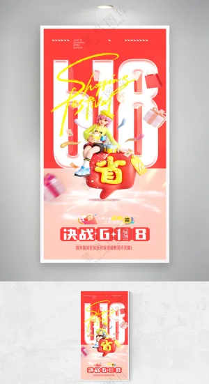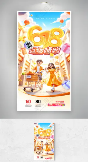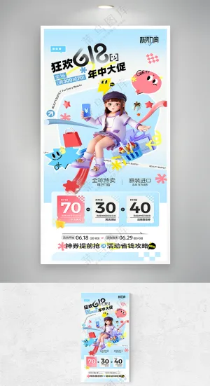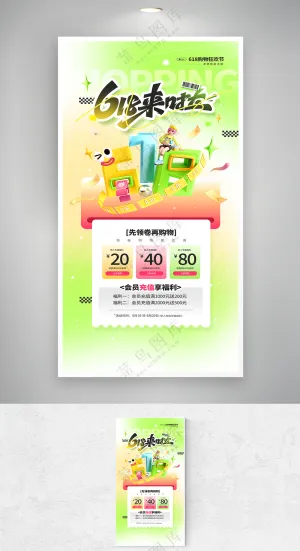 卡通大学生618双11购物节书籍大礼包打折可爱插画