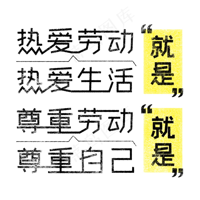 该热爱劳动就是热爱生活,尊重劳动就是尊重自己 歌颂劳动免抠艺术字(2000X2000(DPI:150))psd模版下载素材模板的大小是 6.90M