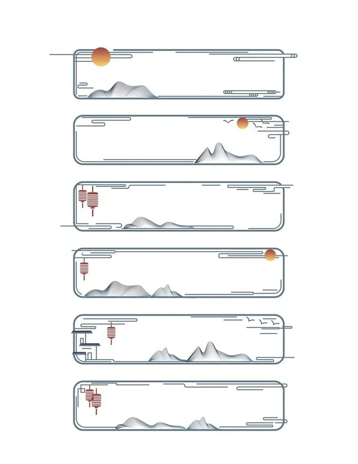 矢量山水, 线性山水, 中国风, 线性, 山水, 山纹, 祥云纹, 祥云素材, 装饰纹样, 风景, 线稿, 设计, 广告设计, 展板模板, AI, 设计, 广告设计, 展板模板, AI, 收起
