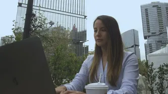 该在笔记本电脑上工作的女人视频素材模板的大小是 29.83M