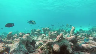 该在礁石的多彩多姿的鱼视频素材模板的大小是 4.37M