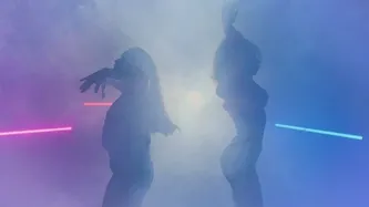 本视频素材作品名称为烟雾和彩灯下两名舞者的剪影,素材编号是3035205,