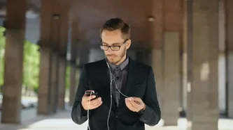 该商人从他的手机听音乐视频素材模板的大小是 2.72M