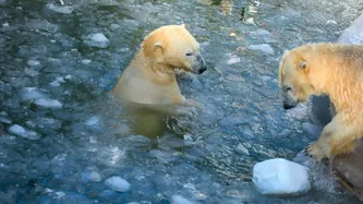 本视频素材作品名称为北极熊在冰上玩塑料容器,素材编号是3039338,