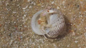 该在掩藏在沙子的壳的螃蟹视频素材模板的大小是 4.55M